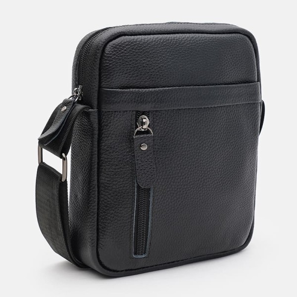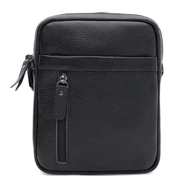 Мужская сумка выполнена из натуральной кожи. Имеет одно основное отделение на молнии, внутри 1 карман на молнии и 1 карман для телефона и других мелочей. С лицевой стороны- 2 кармана, с тыльной стороны- 1 карман на молнии. Подкладка текстиль. Несъемный текстильный ремень регулируется по длине.