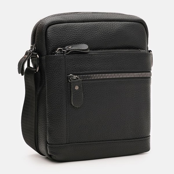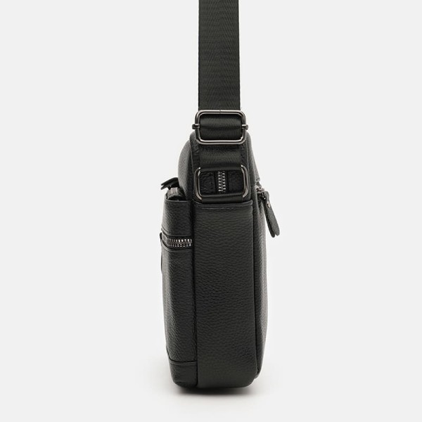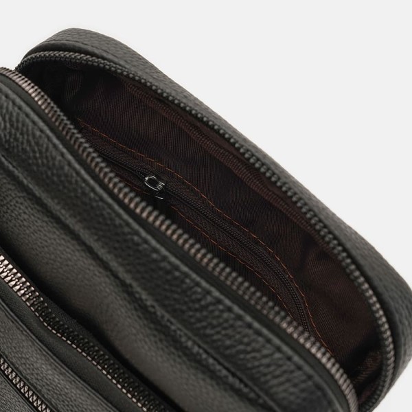 Мужская кожаная сумка имеет 1 основное отделение на молнии. С лицевой стороны 2 кармана на молнии и 1 карман- с тыльной стороны. Внутри сумки имеется 1 карман на молнии для телефона или других мелочей. Подкладка текстиль. Несъемный текстильный ремень регулируется по длине.