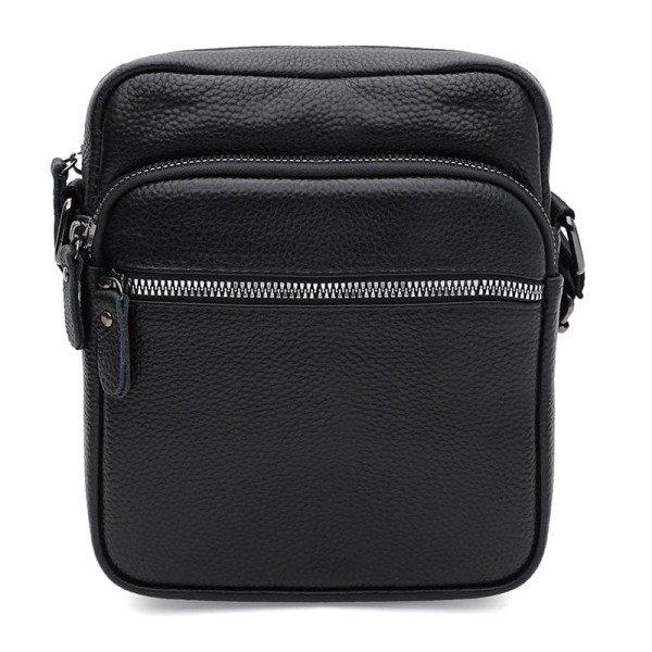 Мужская сумка выполнена из натуральной кожи. Имеет одно основное отделение на молнии, внутри 1 карман на молнии. С лицевой стороны- 2 кармана на молнии, с тыльной стороны- 1 карман на молнии. Подкладка текстиль. Несъемный текстильный ремень регулируется по длине.