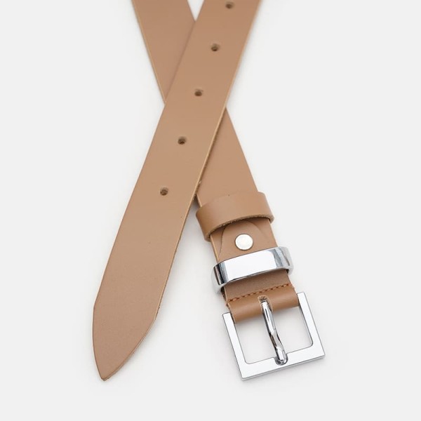Женский кожаный ремень. Качественные материалы, стильная пряжка и аккуратный внешний вид. Ремень выполнен из натуральной кожи и металлической фурнитуры. Лицевая сторона ремня защищена от влаги, жира и агрессивных сред. Уход – минимальный, при необходимости (сухая чистка).