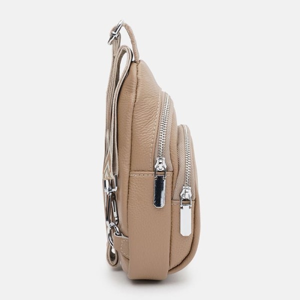 Сумка слинг женская через плечо подойдет активным девушкам. Изделие выполнено из натуральной кожи. Имеет 1 отдление на молнии, внутри 1 карман. С лицевой стороны- 1 карман на молнии. Подкладка и съемный ремень из текстиля.