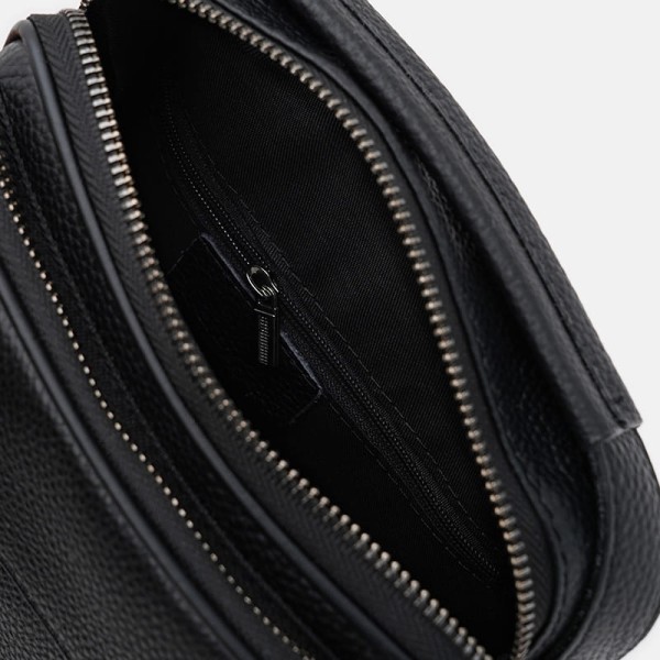 Мужская сумка выполнена из качественной кожи. Имеет 1 основное отделение на молнии, внутри 1 карман на молнии и 1 карман среднего размера. С лицевой стороны: 1 карман на молнии, с тыльной-1 карман на молнии. Подкладка текстиль. Несъемный ремень из текстиля, ручка из кожи.