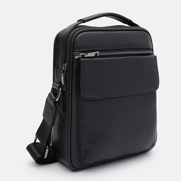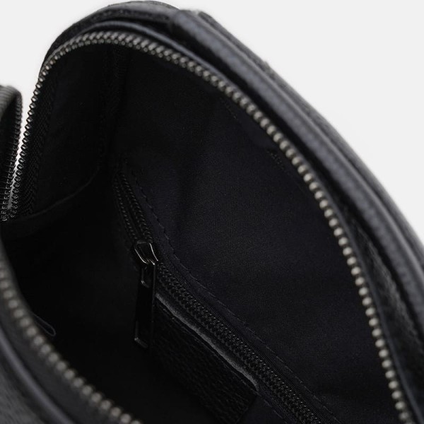 Мужская сумка выполнена из качественной кожи. Имеет 1 основное отделение на молнии, внутри 1 карман на молнии и 2 кармана для телефона и других мелочей. С лицевой стороны: 1 карман на молнии и 1 карман на магните, с тыльной-1 карман на молнии. Подкладка текстиль. Несъемный ремень из текстиля, ручка из кожи.