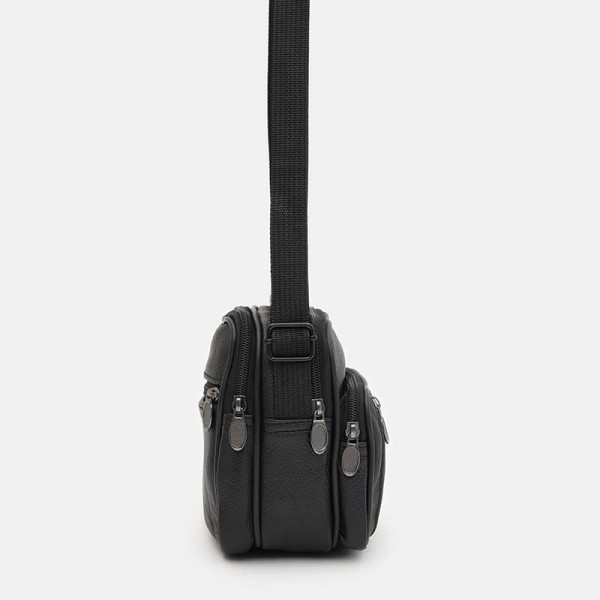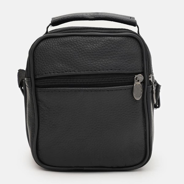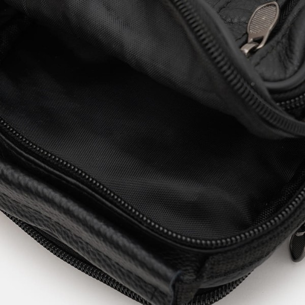 Мужская кожаная сумка имеет 2 основных отделения, закрывается на молнию. С лицевой стороны - 2 кармана на молнии, с тыльной -1 карман на молнии. Подкладка текстиль. Ручка: кожа + текстиль; несъемный текстильный ремень регулируется по длине.