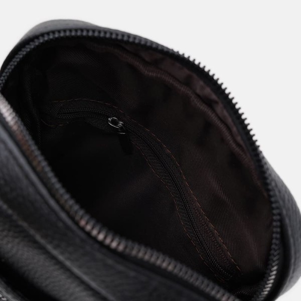 Мужская сумка выполнена из натуральной кожи. Имеет одно основное отделение на молнии, внутри 1 карман на молнии. С лицевой стороны- 2 кармана, с тыльной стороны- 1 карман на молнии. Подкладка текстиль. Несъемный текстильный ремень регулируется по длине.