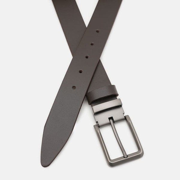 Мужской кожаный ремень. Качественные материалы, стильная пряжка и аккуратный внешний вид. Ремень выполнен из натуральной кожи и металлической фурнитуры. Лицевая сторона ремня защищена от влаги, жира и агрессивных сред. Уход – минимальный (сухая чистка). При необходимости, ремень можно укоротить самостоятельно до нужной вам длины.