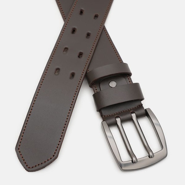 Мужской кожаный ремень. Качественные материалы, стильная пряжка и аккуратный внешний вид. Ремень выполнен из натуральной кожи и металлической фурнитуры. Лицевая сторона ремня защищена от влаги, жира и агрессивных сред. Уход – минимальный (сухая чистка). При необходимости, ремень можно укоротить самостоятельно до нужной вам длины.