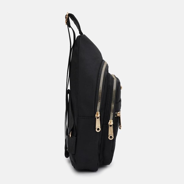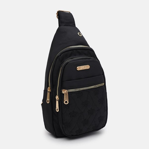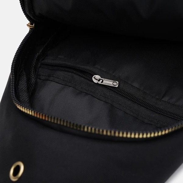 Женский рюкзак выполнен из текстиля, имеет 1 основное отделение на молнии, внутри 1 карман на молнии. С лицевой стороны 2 кармана на молнии и 1 карман для телфона и других мелочей. Подкладка текстиль, Несъемный текстильный ремень регулируется по длине.