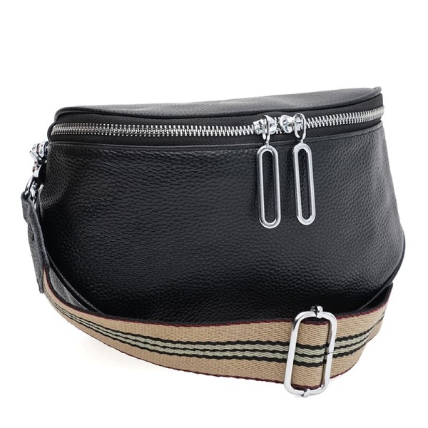 Женская сумка выполнена из натуральной кожи. Закрывается на молнию. Имеет 1 основное отделение, внутри есть 1 карман на молнии и 1 карман для телефона / других мелочей. С тыльной стороны-1 карман на молнии. Подкладка – текстиль. В комплекте съемный плечевой ремень из текстиля.