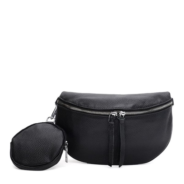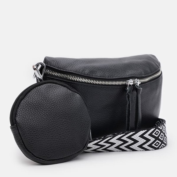 Стильная женская кожаная сумка имеет 1 основное отделение на молнии. Внутри 1 карман на молнии и 1 карман для телефона и других мелочей. С тыльной стороны-1 карман на молнии. Подкладка текстиль. С комплекте сьемный ремень из текстиля. Также есть дополнительный съемный карман.