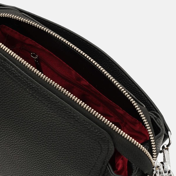 Женская кожаная сумка имеет 1 отделение на молнии. Внутри сумки 2 кармана на молнии под телефон и разные мелочи. Подкладка текстиль. В комплекте: съемная ручка из кожи и регулируемый по длине съемный кожаный ремень.