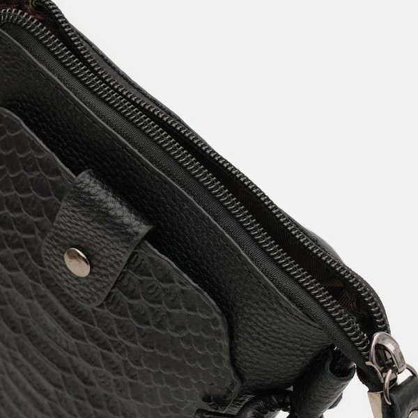 Женская кожаная сумка имеет 1 основное отделение на молнии. Внутри сумки - 1 карман для телефона и других мелочей. С наружной стороны сумки имеется 2 кармана. Подкладка текстиль, съемный кожаный ремень регулируется по длине.